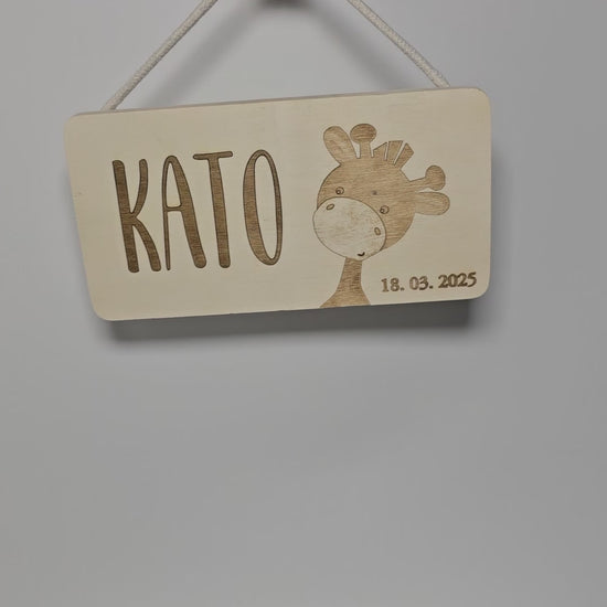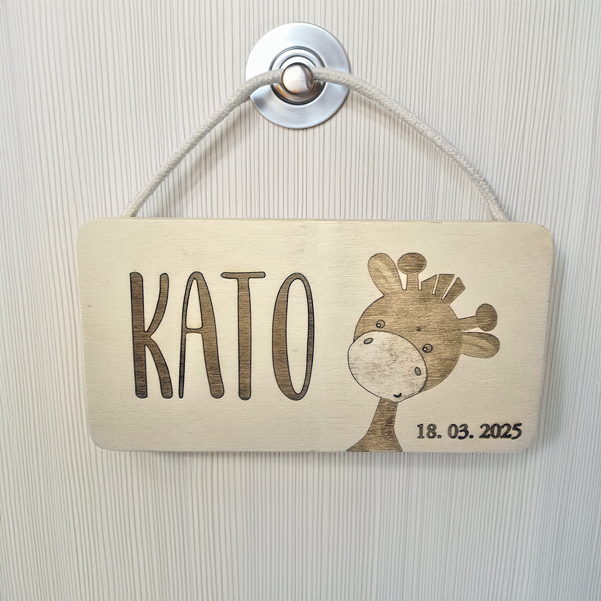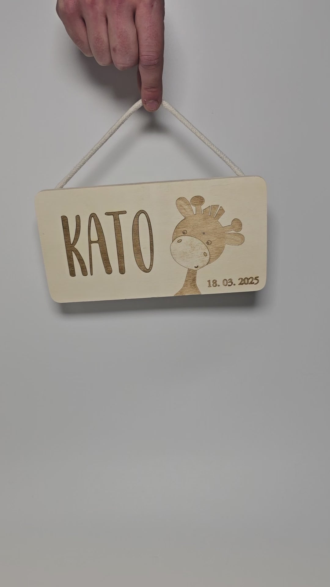 Carefully engraved in high-quality wood and fully personalized with name, date of birth and theme [giraffe] so that it completely matches your style and story .