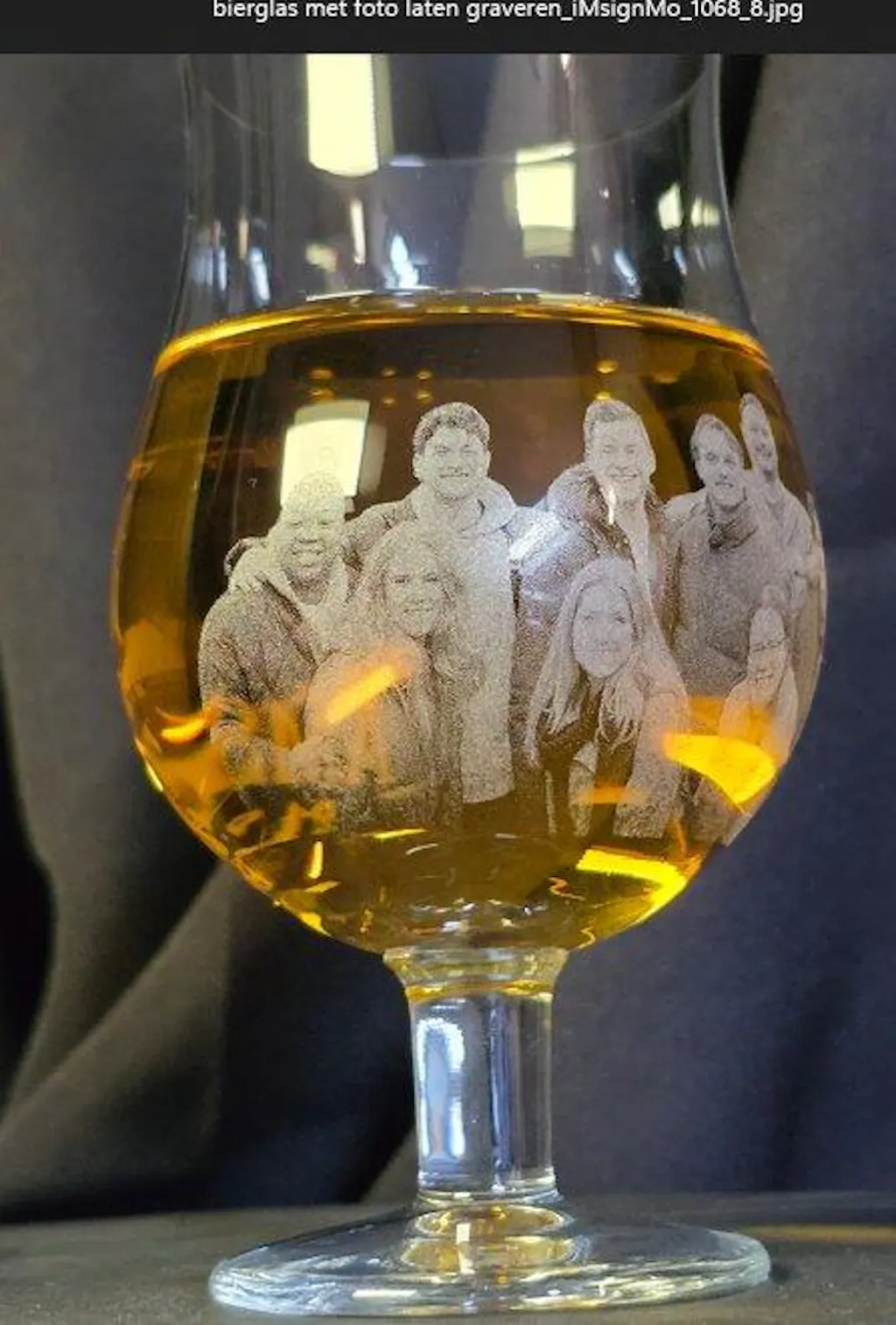 Dit bierglas wordt in België ambachtelijk gegraveerd met jouw foto. Geen massaproductie, maar een snelle en persoonlijke aanpak, volledig op maat door onze gediplomeerde ontwerper.